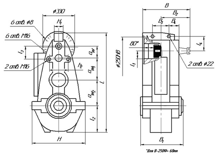 Примечание: Редуктор 2Ц3вк(ф)-160 изготавливается в неразъемном корпусе.
