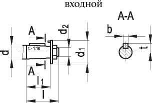 Размеры входных валов редукторов Ц2-250, Ц2-300, Ц2-350, Ц2-400, Ц2-500, Ц2-650, Ц2-750, Ц2-1000