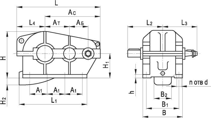 Aб | Ат | А1 | В | В1 | В2 | Н | Н1 | Н2 | h | L | L1 | L2 | L3 | L4 | d | n | Масса |