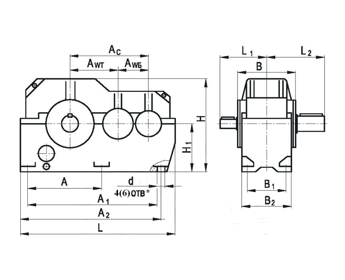 | Ac | Awб | Awт | A | A1 | A2 | B | B1 | B2 | H | H1 | L | L1 | L2 | d | ||