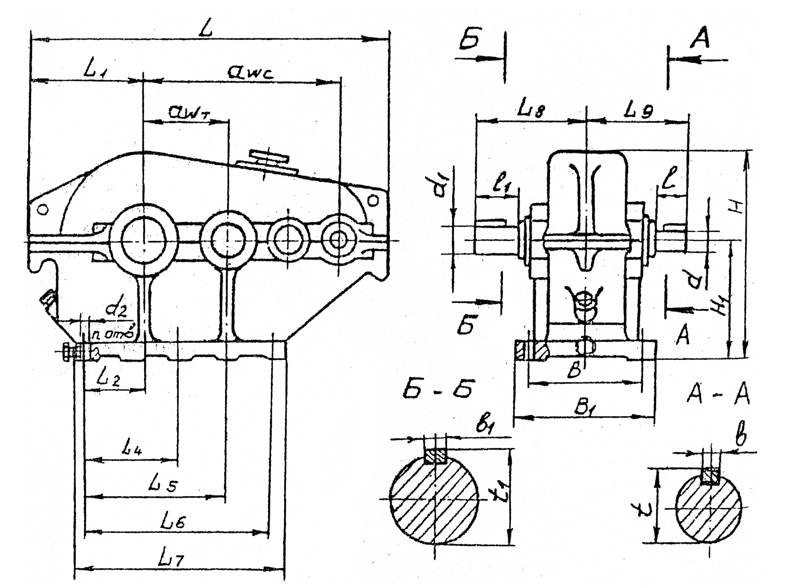Редукторы представляют собой четырёхосную зубчатую передачу, состоящую из цилиндри ческих колёс, валы которых установлены в подшипниках качения, вмонтированных в чугун ный корпус.