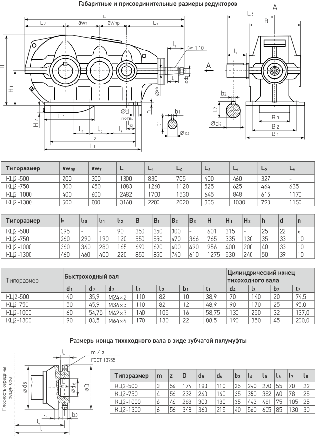 | допускаемая консольная нагрузка, на тихоходном валу, Н | 11500 | 15500 | 28000 | 75000 |
